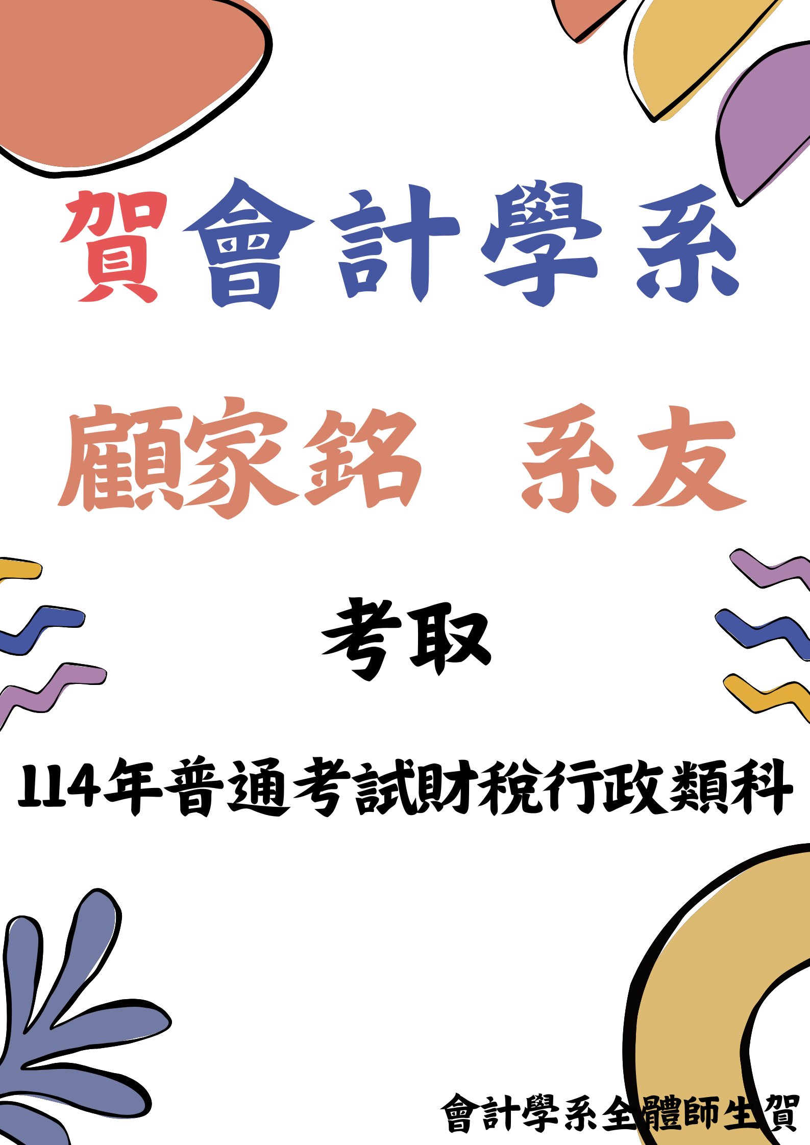【恭賀】會計學系系友 顧家銘 考取 114公務人員普通考試財稅行政類科